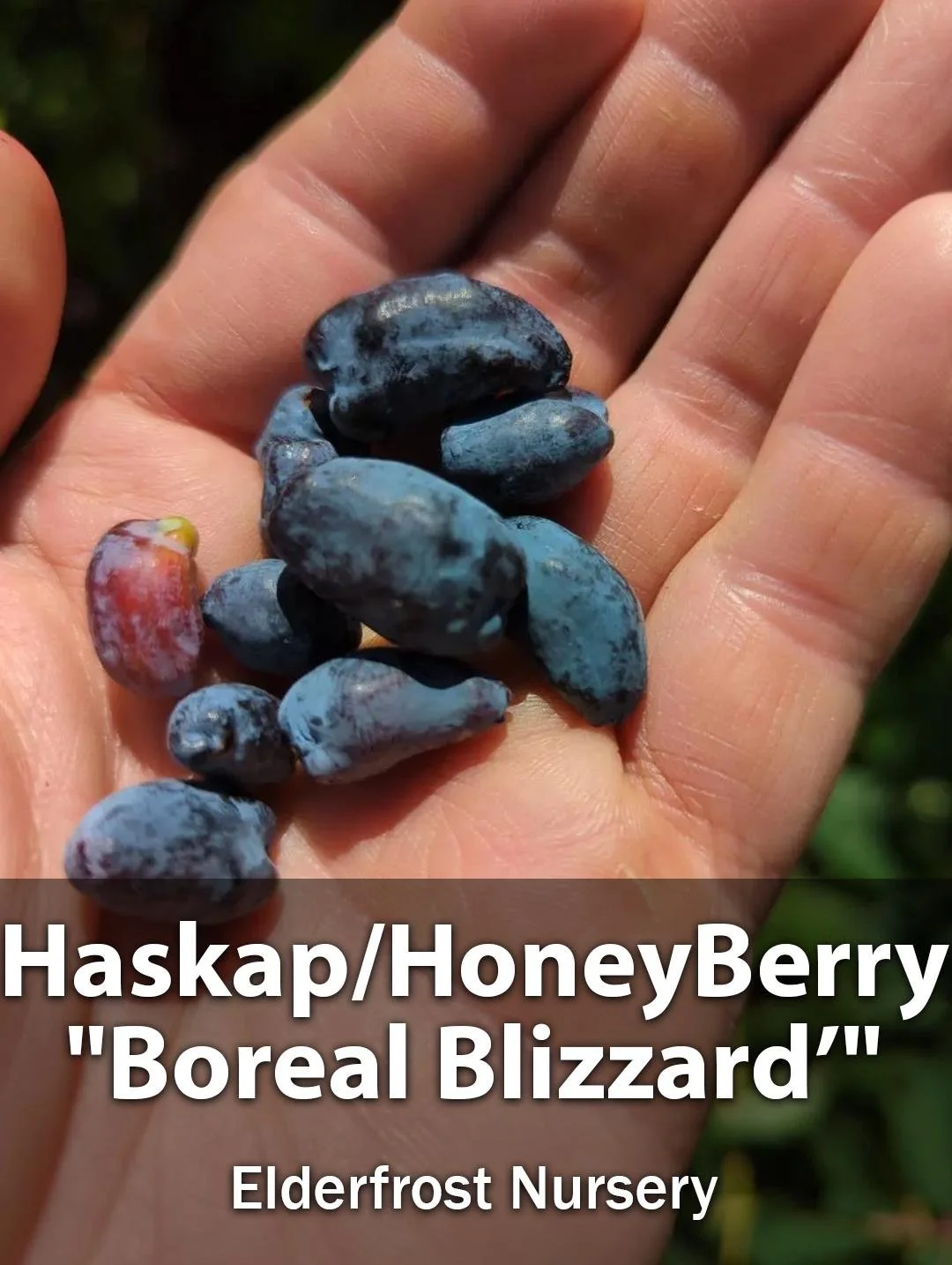 Boreal Blizzard is a University of Saskatchewan cultivar that produces the largest and heaviest fruit of any current haskap variety. The berries are thick, "surfboard-shaped," and notably sweeter than older cultivars. This variety blooms later than European types, making it more resistant to late spring frosts. It requires a late-blooming companion, such as 'Boreal Beast' or 'Boreal Beauty', for pollination.